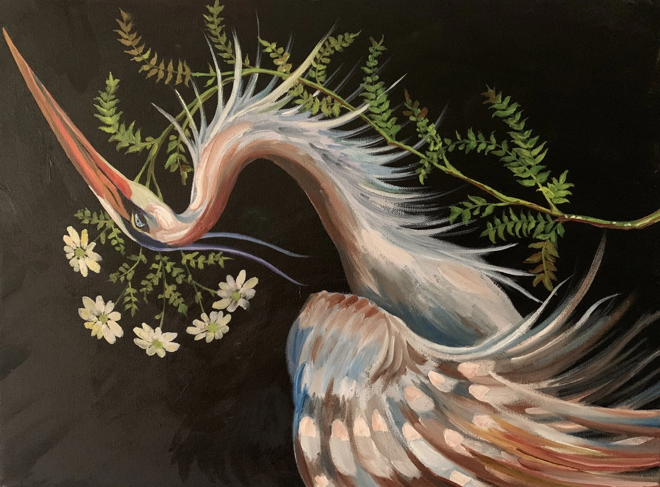 Heron with Four Branches of Trumpets