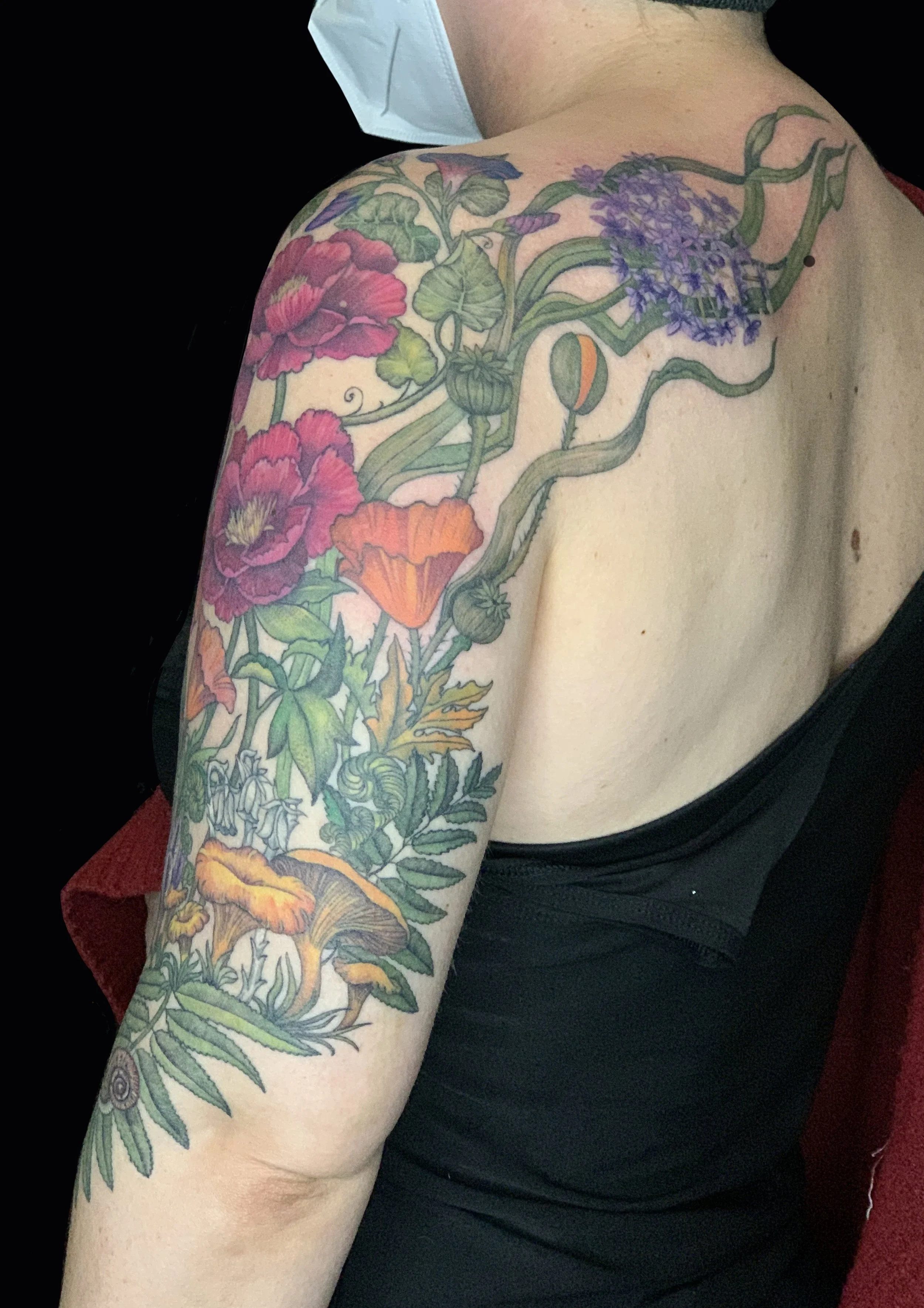 Peonies, Iris, Tiger Lily, Bleeding Heart, and Lavender Tattoo